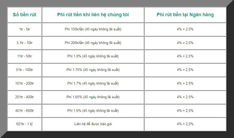 - Phí rút tiền mặt chỉ từ 1.5%. Xem BẢNG GIÁ tại đây