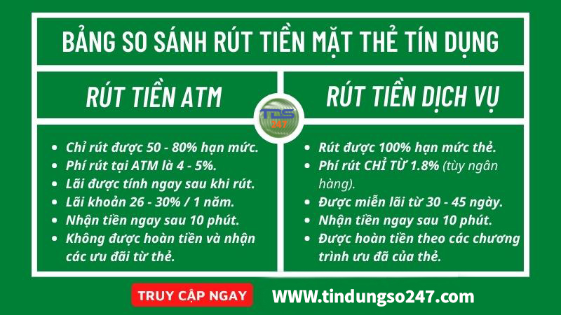 So sánh 2 hình thức rút tiền mặt thẻ tín dụng